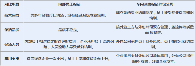 車間深度保潔外包與內部員工保潔對比