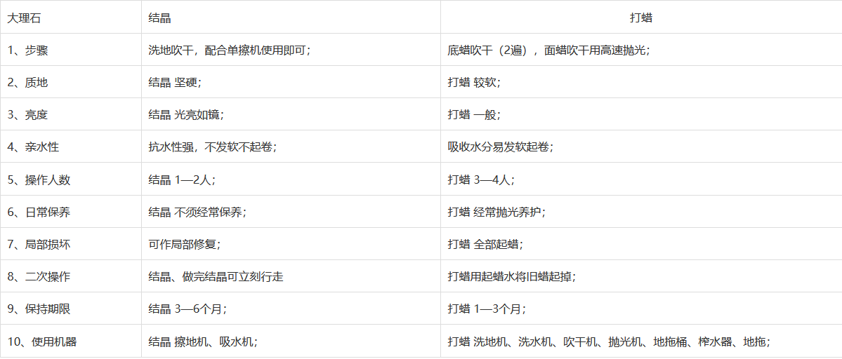 大理石進(jìn)行晶面保養(yǎng)時(shí)必須具有一定光澤度(60度以上)、平整度、無深度劃痕、和嚴(yán)重污損為基礎(chǔ)。
